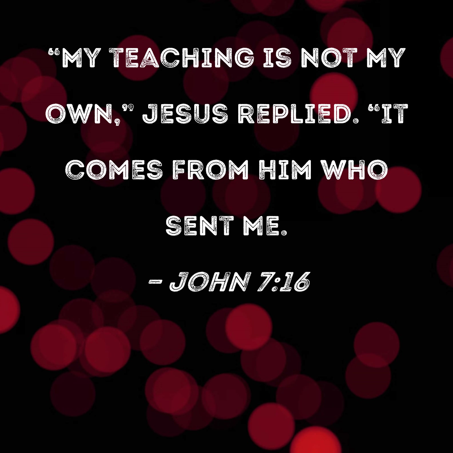 John 7:16 "My teaching is not My own," Jesus replied. "It comes from Him who sent Me.