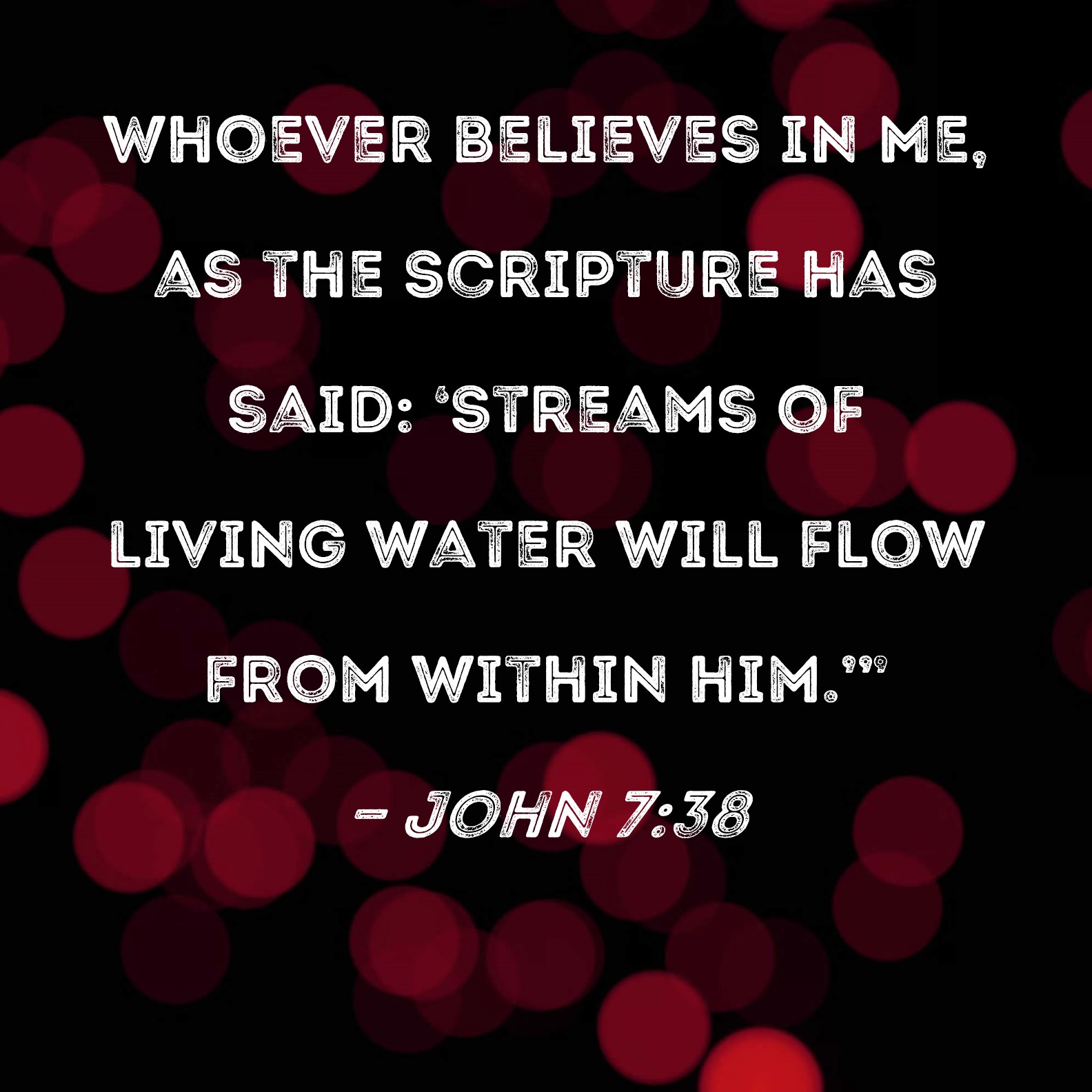 John 7:38 Whoever believes in Me, as the Scripture has said: 'Streams of living water will flow from within him.'"