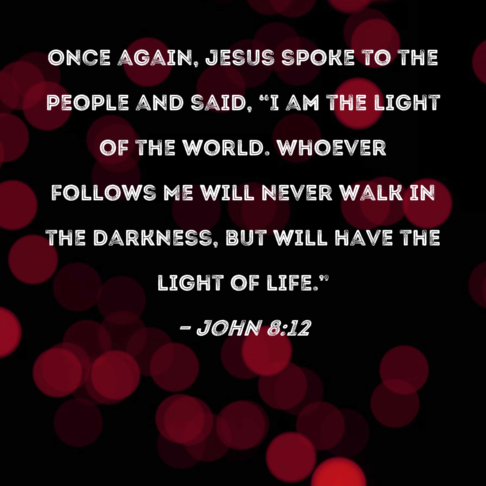 John 8:12 Once again, Jesus spoke to the people and said, "I am the light of the world. Whoever follows Me will never walk in the darkness, but will have the light of life."