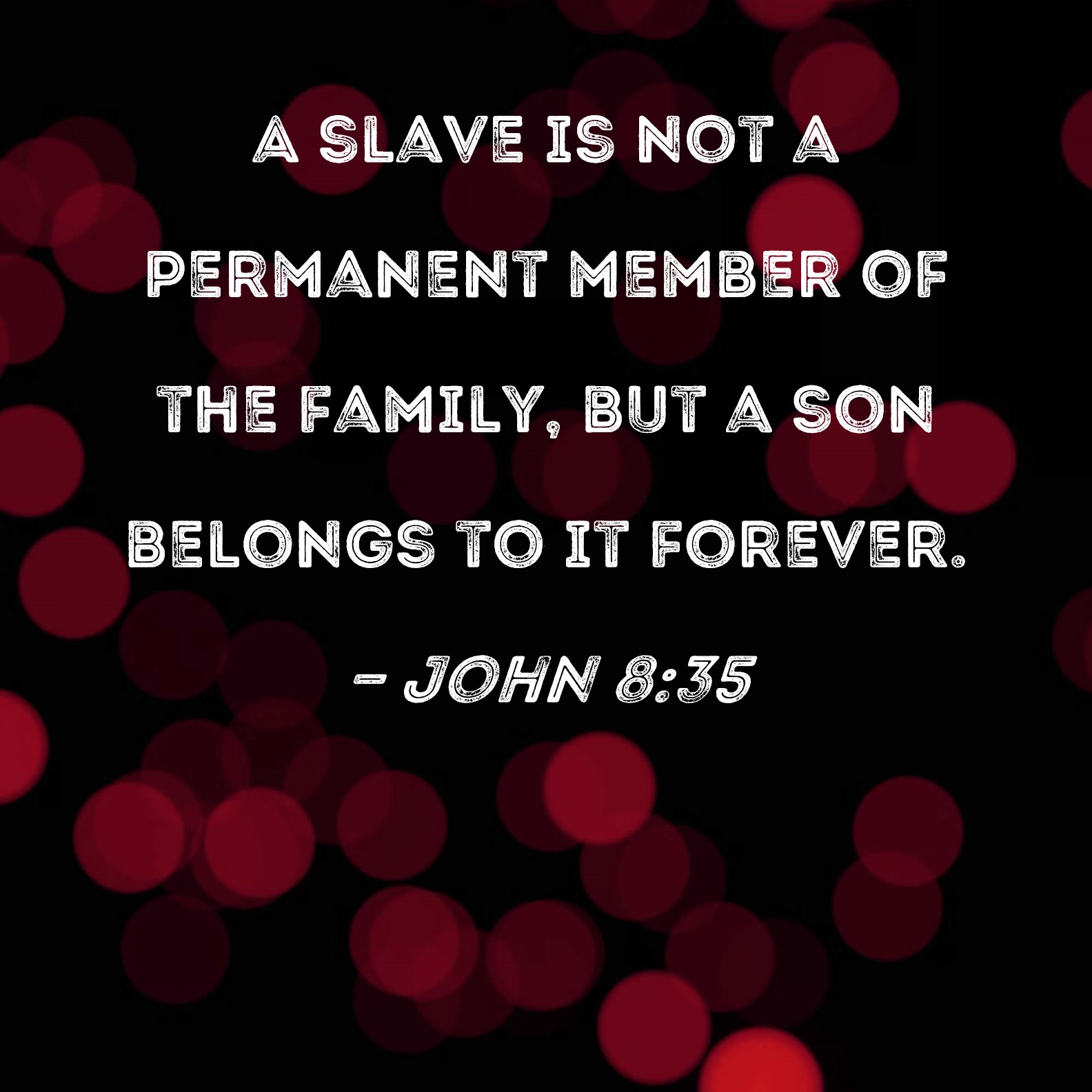 John 8:35 A slave is not a permanent member of the family, but a son belongs to it forever.