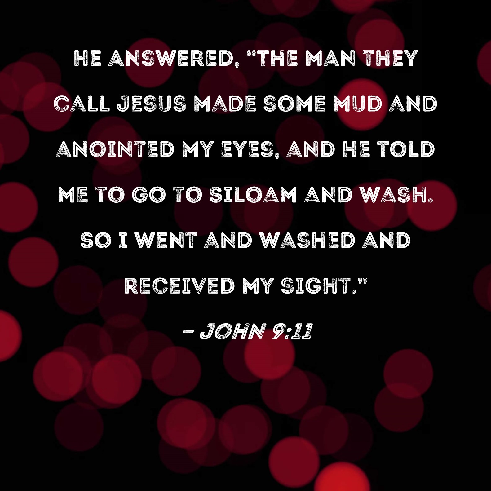 John 9:11 He answered, "The man they call Jesus made some mud and anointed my eyes, and He told me to go to Siloam and wash. So I went and washed and received my sight."