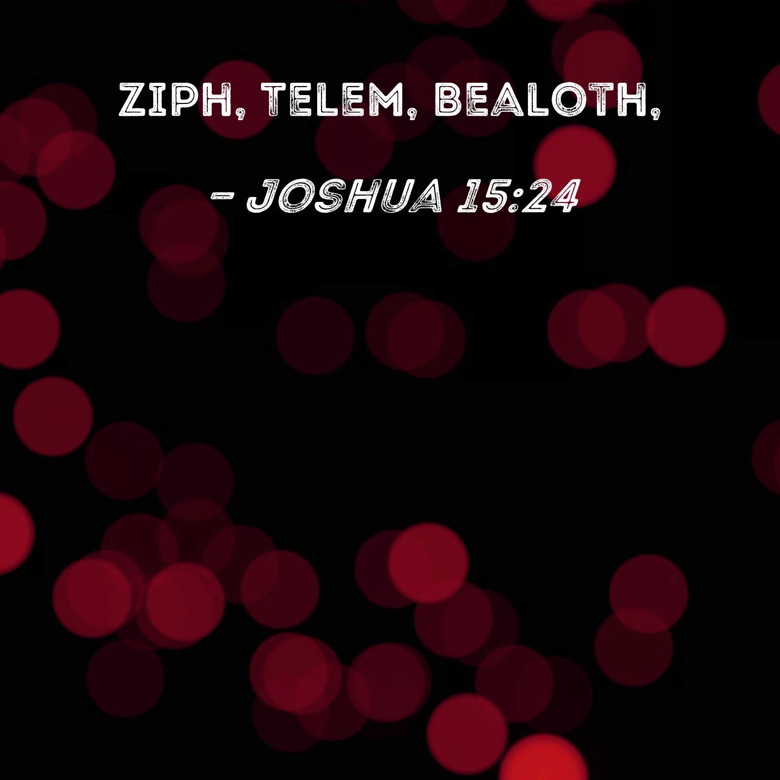 BSB: Ziph, Telem, Bealoth, KJV: Ziph, and Telem, and Bealoth, DRB: Ziph and Telem and Baloth, DBT: Ziph, and Telem, and Bealoth, ERV: Ziph, and Telem, and Bealoth; WBT: Ziph, and Telem, and Bealoth, WEB: Ziph, Telem, Bealoth, YLT: Ziph, and Telem, and Bealoth,Links Joshua 15:24 NIV • Joshua 15:24 NLT • Joshua 15:24 ESV • Joshua 15:24 NASB • Joshua 15:24 KJV • Joshua 15:24 Interlinear • Joshua 15:24 Commentaries • Joshua 15:24 Parallel Texts • Joshua 15:24 Bible Apps • Joshua 15:24 Parallel • Bible Hub |