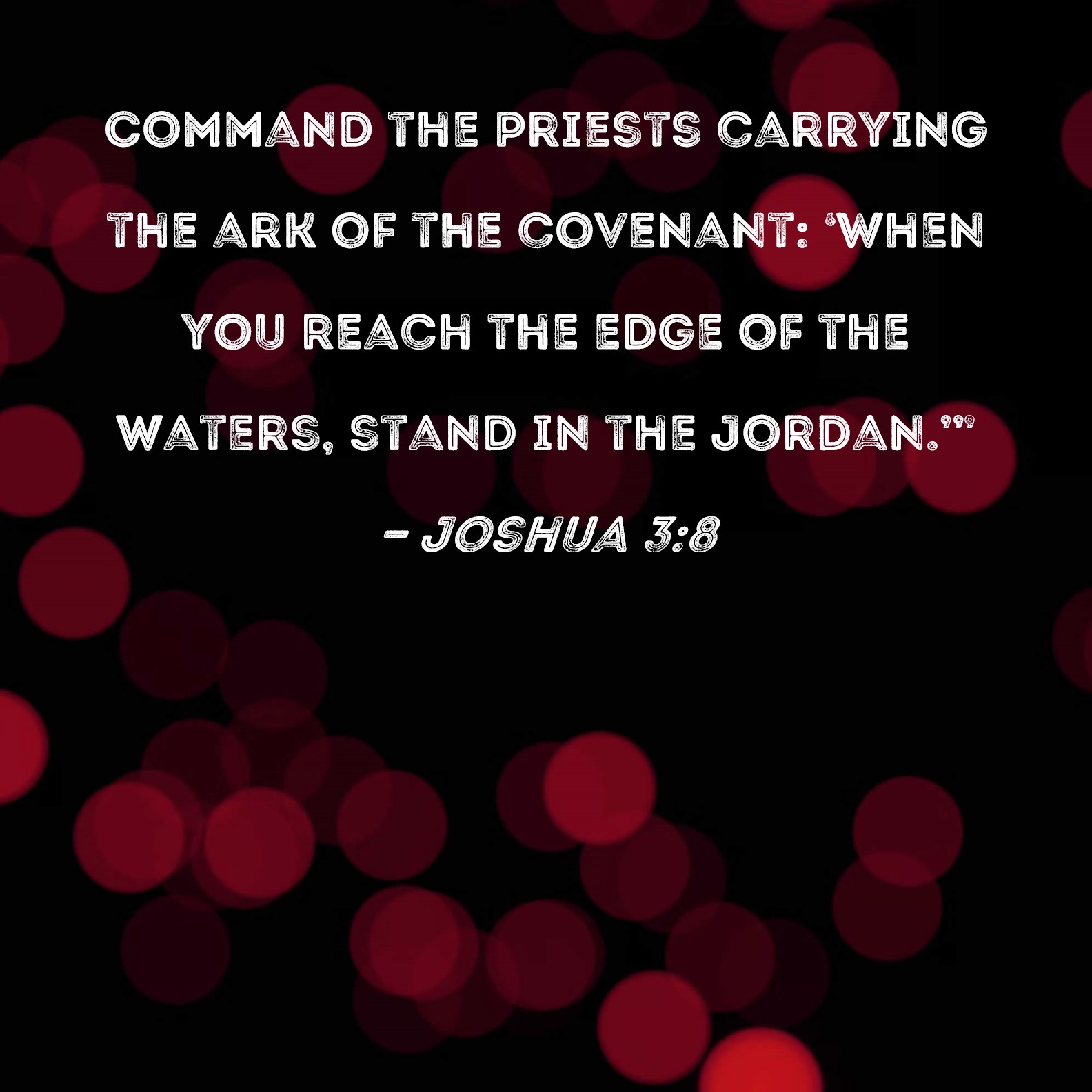 Joshua 3:8 Command the priests carrying the ark of the covenant: 'When you reach the edge of the waters, stand in the Jordan.'"