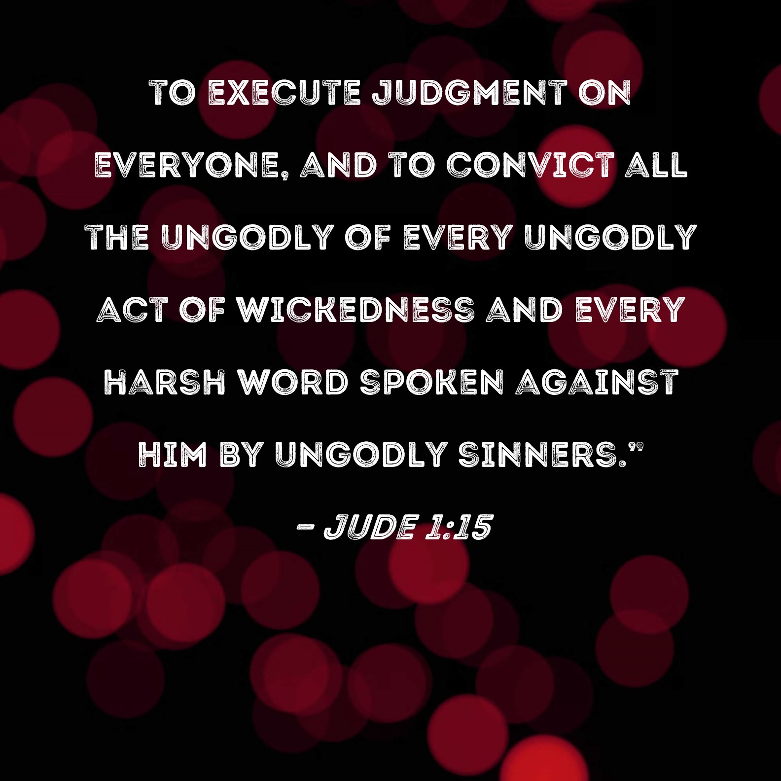 Jude 1:15 to execute judgment on everyone, and to convict all the ungodly of every ungodly act of wickedness and every harsh word spoken against Him by ungodly sinners."