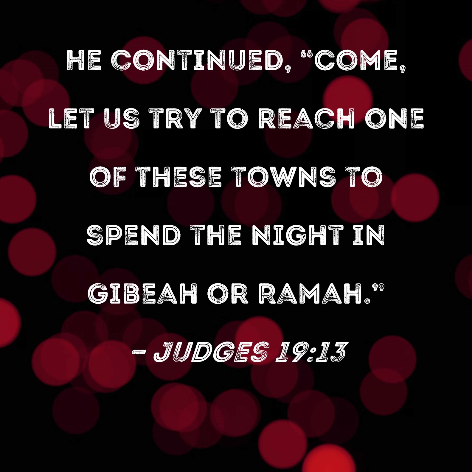 Judges 19:13 He continued, "Come, let us try to reach one of these towns to spend the night in Gibeah or Ramah."