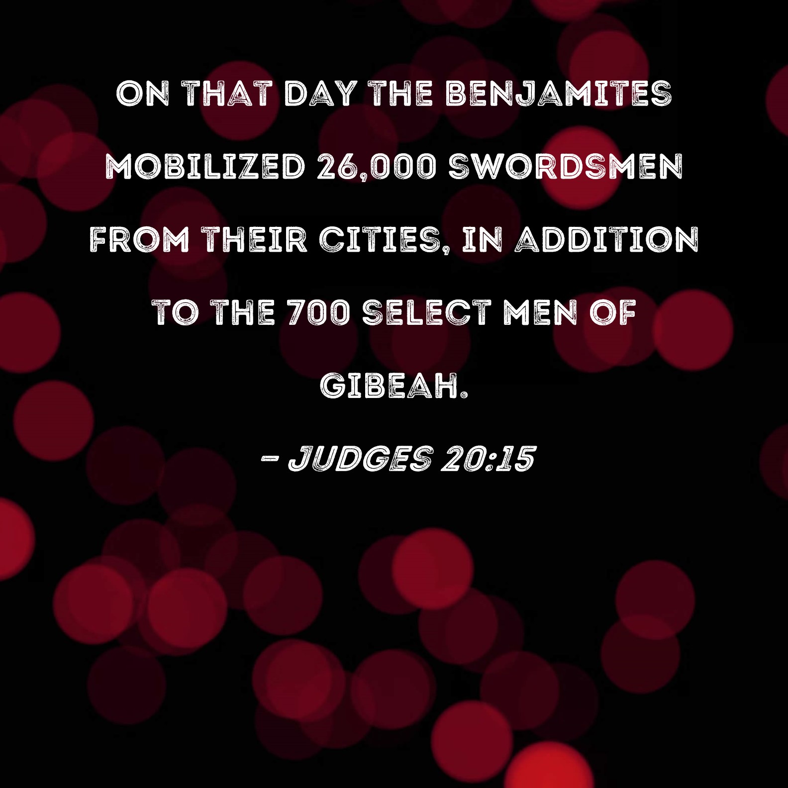 DBT:  And the Benjaminites mustered out of their cities on that day twenty-six thousand men that drew the sword, besides the inhabitants of Gib'e-ah, who mustered seven hundred picked men.