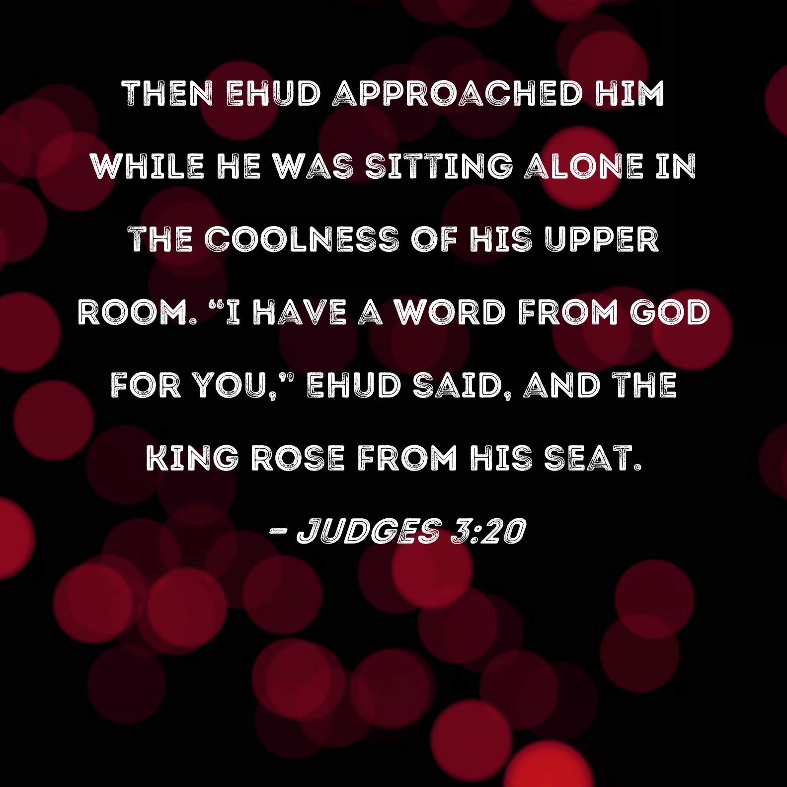 Judges 3:20 Then Ehud approached him while he was sitting alone in the coolness of his upper room. "I have a word from God for you," Ehud said, and the king rose from his seat.
