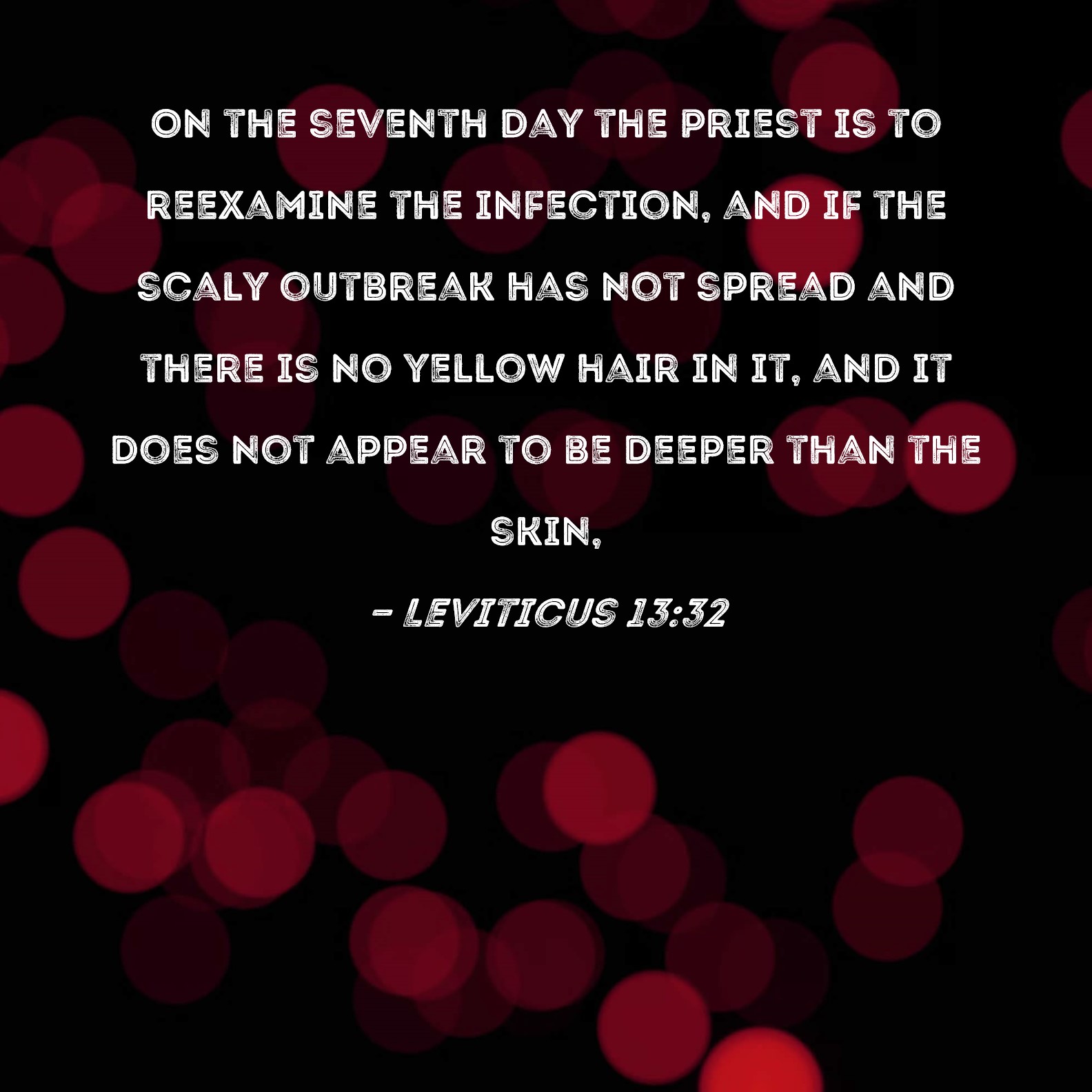 Leviticus 13:32 On the seventh day the priest is to reexamine the infection, and if the scaly outbreak has not spread and there is no yellow hair in it, and it does not appear to be deeper than the skin,