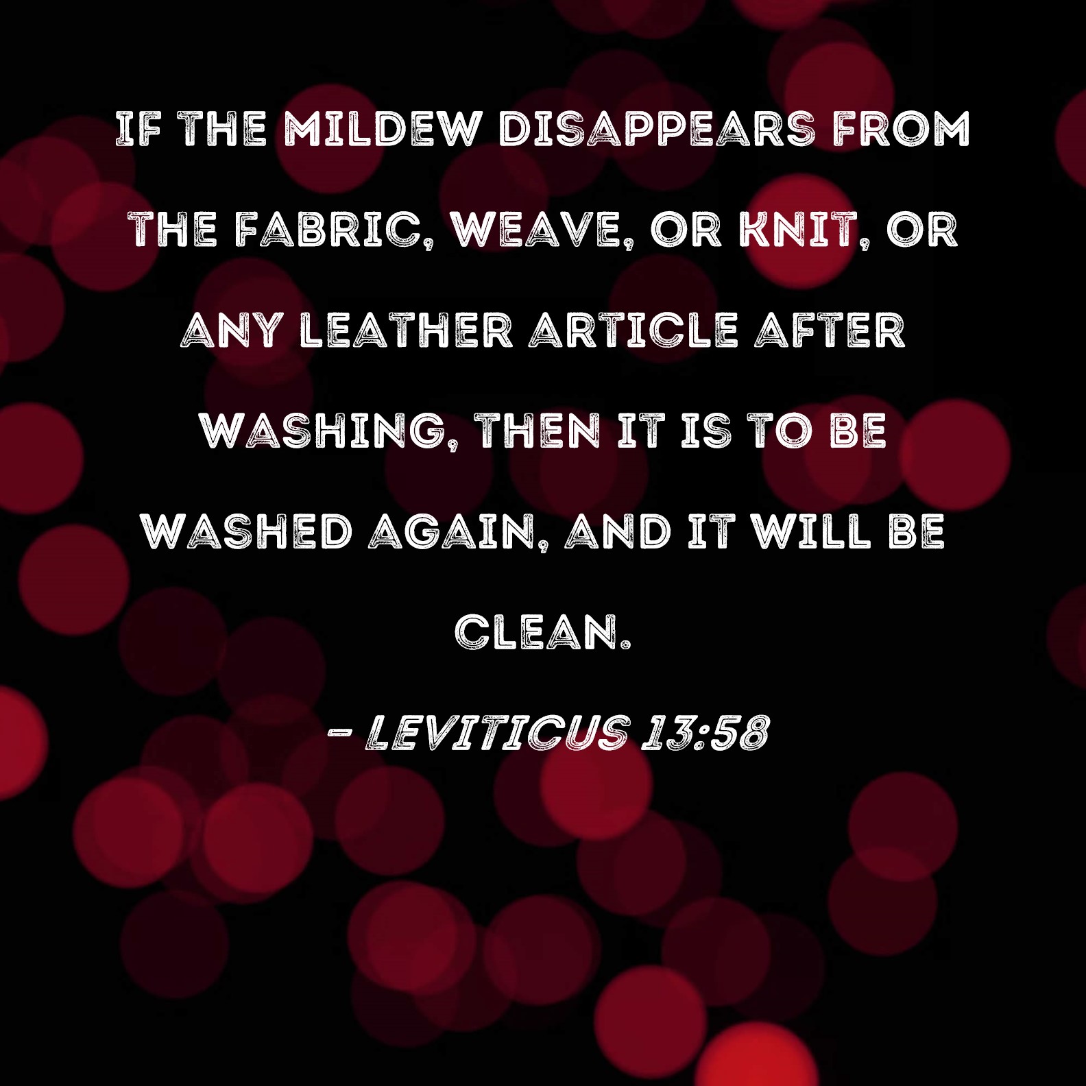 Leviticus 13:58 If the mildew disappears from the fabric, weave, or knit, or any leather article after washing, then it is to be washed again, and it will be clean.