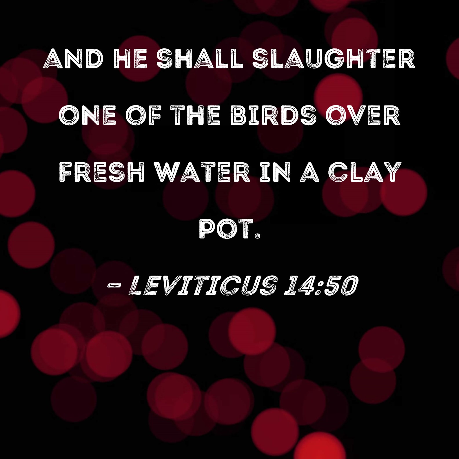 Leviticus 14:50 and he shall slaughter one of the birds over fresh water in a clay pot.