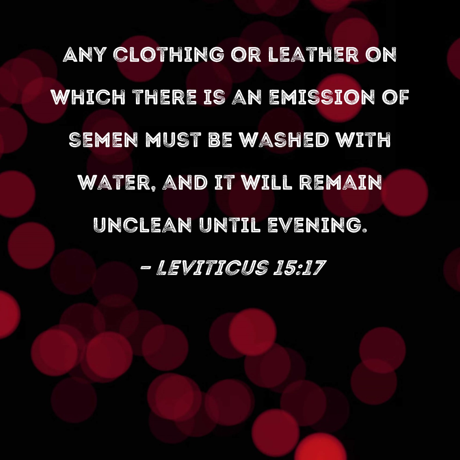 Leviticus 15:17 Any clothing or leather on which there is an emission of semen must be washed with water, and it will remain unclean until evening.