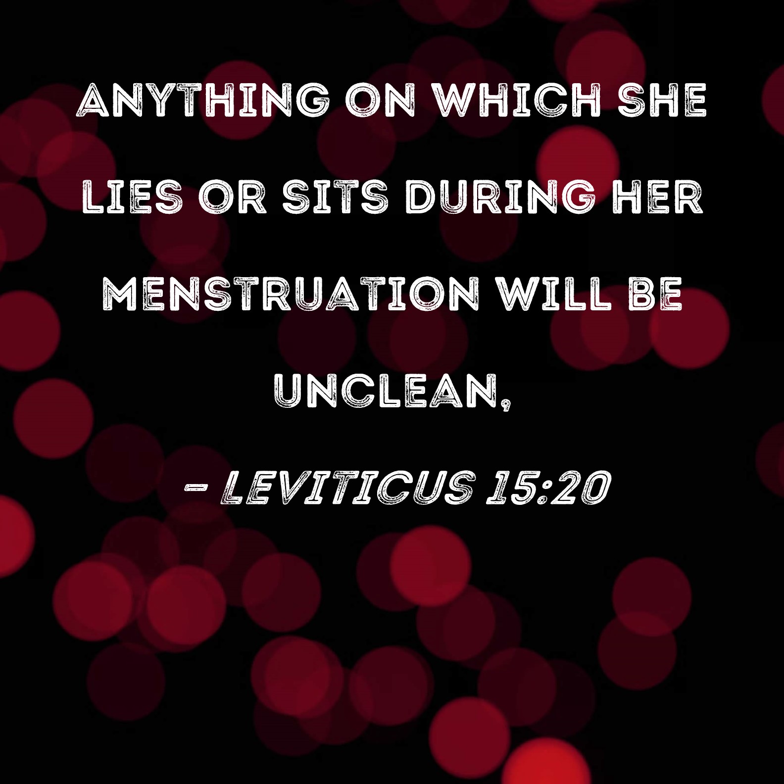 Leviticus 15:20 Anything on which she lies or sits during her menstruation will be unclean,