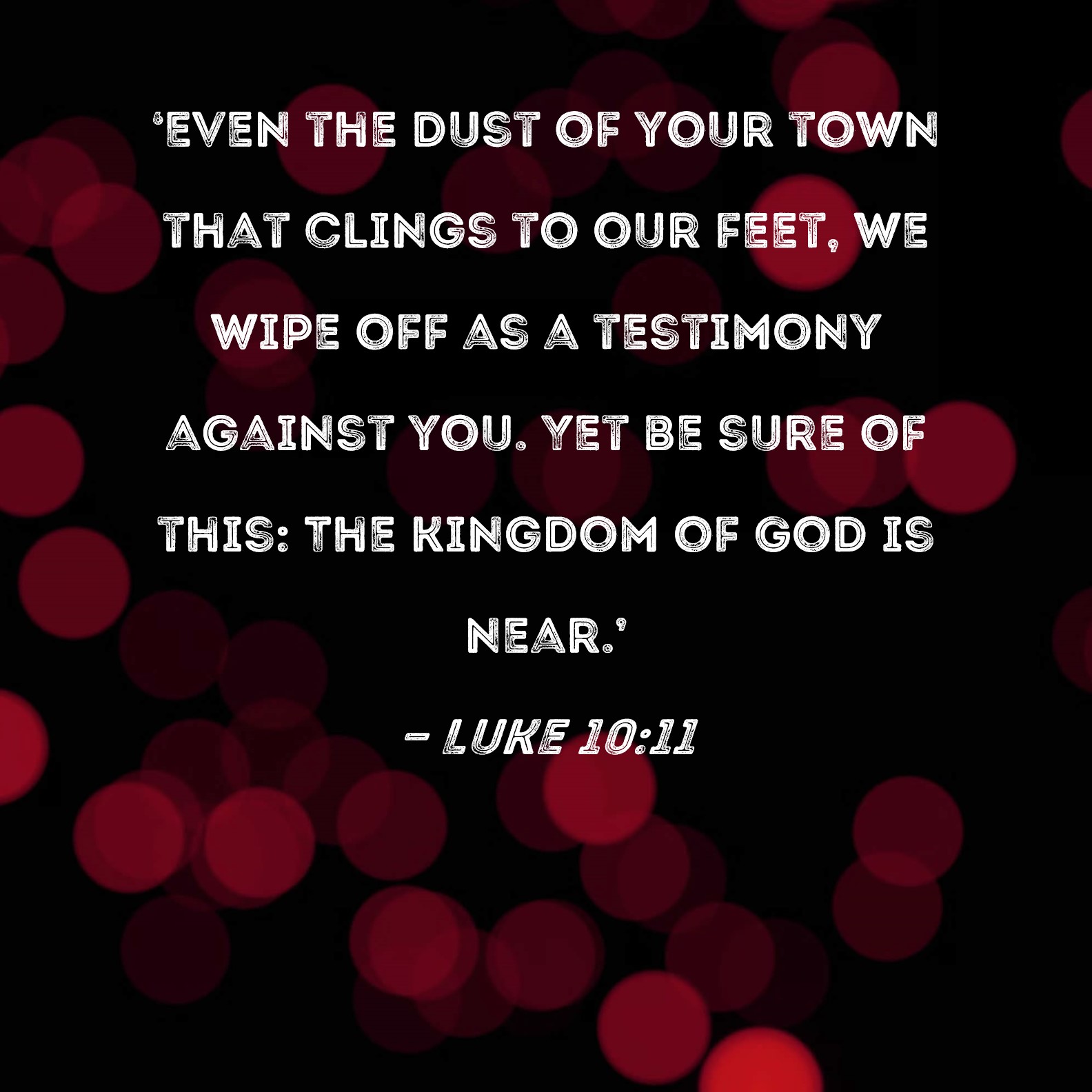 Luke 10:11 Even the dust of your town that clings to our feet, we wipe off as a testimony against you. Yet be sure of this: The kingdom of God is near.'