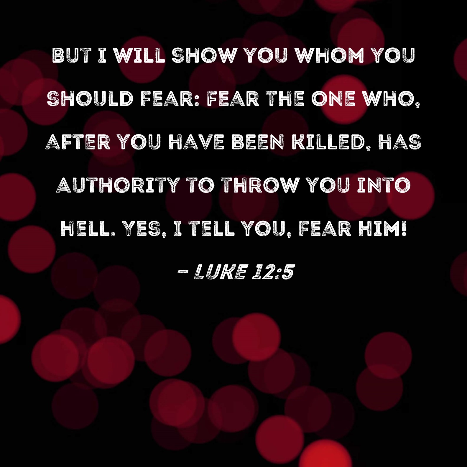 Luke 12:5 But I will show you whom you should fear: Fear the One who, after you have been killed, has authority to throw you into hell. Yes, I tell you, fear Him!