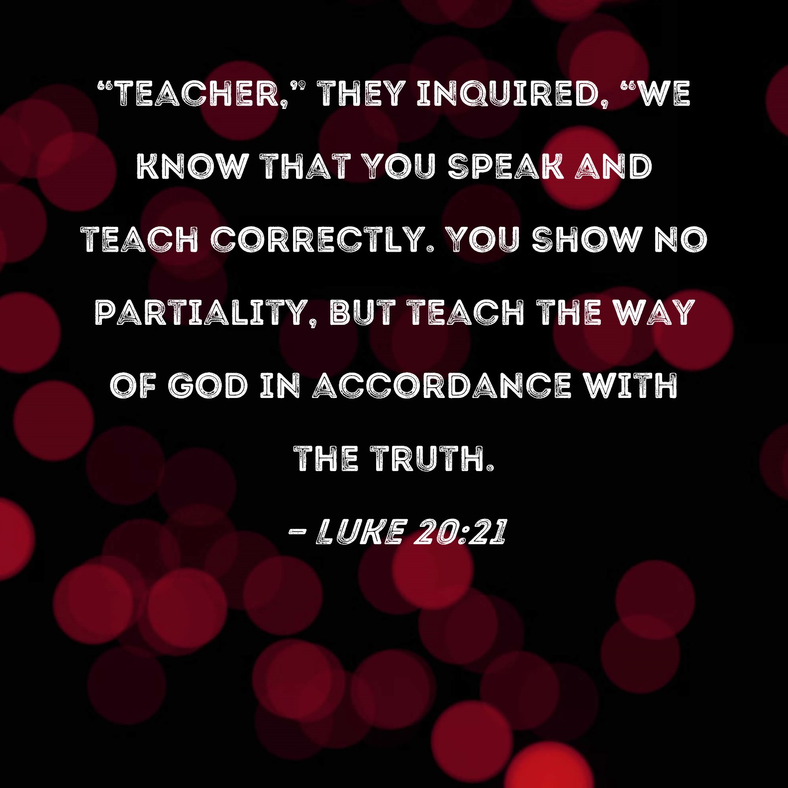 Luke 20:21 "Teacher," they inquired, "we know that You speak and teach correctly. You show no partiality, but teach the way of God in accordance with the truth.