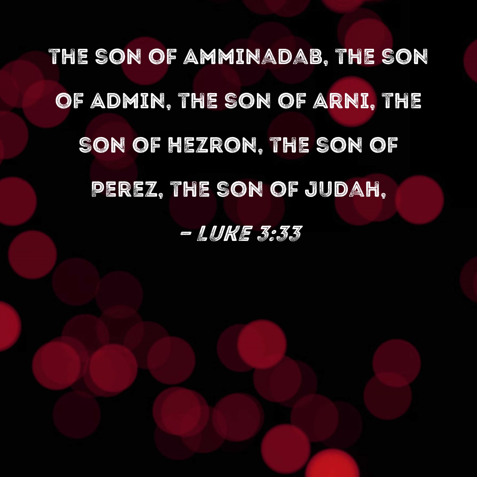 Luke 3:33 the son of Amminadab, the son of Admin, the son of Arni, the son of Hezron, the son of Perez, the son of Judah,