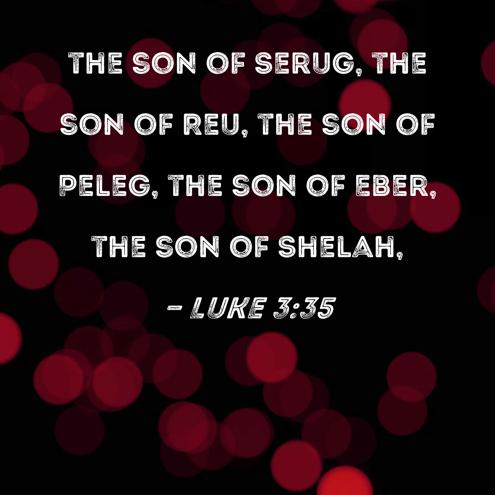 Luke 3:35 the son of Serug, the son of Reu, the son of Peleg, the son of Eber, the son of Shelah,