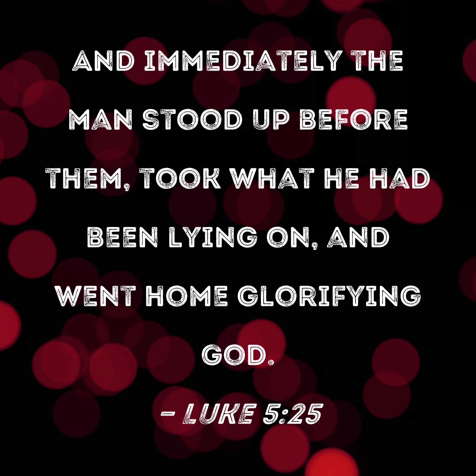 Luke 5:25 And immediately the man stood up before them, took what he had been lying on, and went home glorifying God.