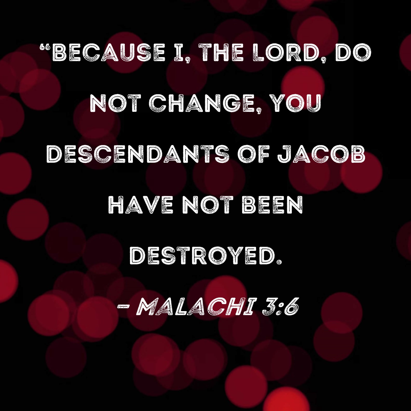 Malachi 3:6 "Because I, the LORD, do not change, you descendants of Jacob have not been destroyed.