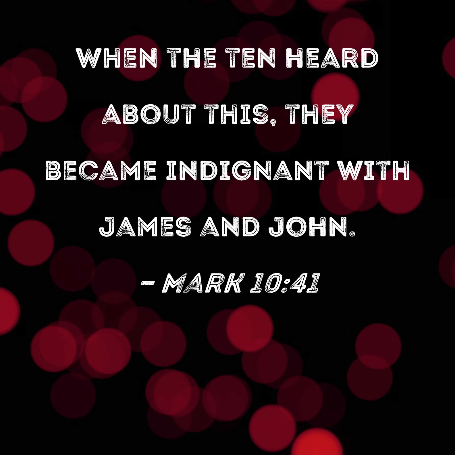 Mark 10:41 When the ten heard about this, they became indignant with James and John.