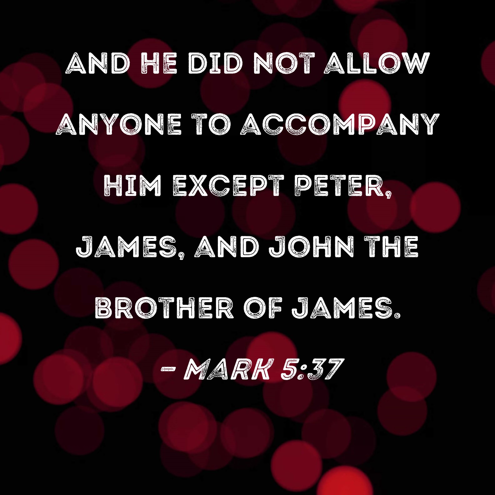 Mark 5:37 And He did not allow anyone to accompany Him except Peter, James, and John the brother of James.