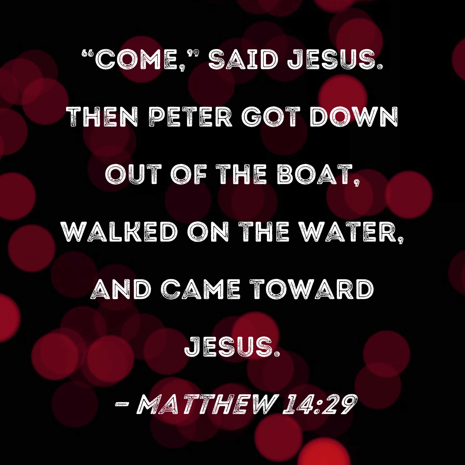 Matthew 14:29 "Come," said Jesus. Then Peter got down out of the boat, walked on the water, and came toward Jesus.