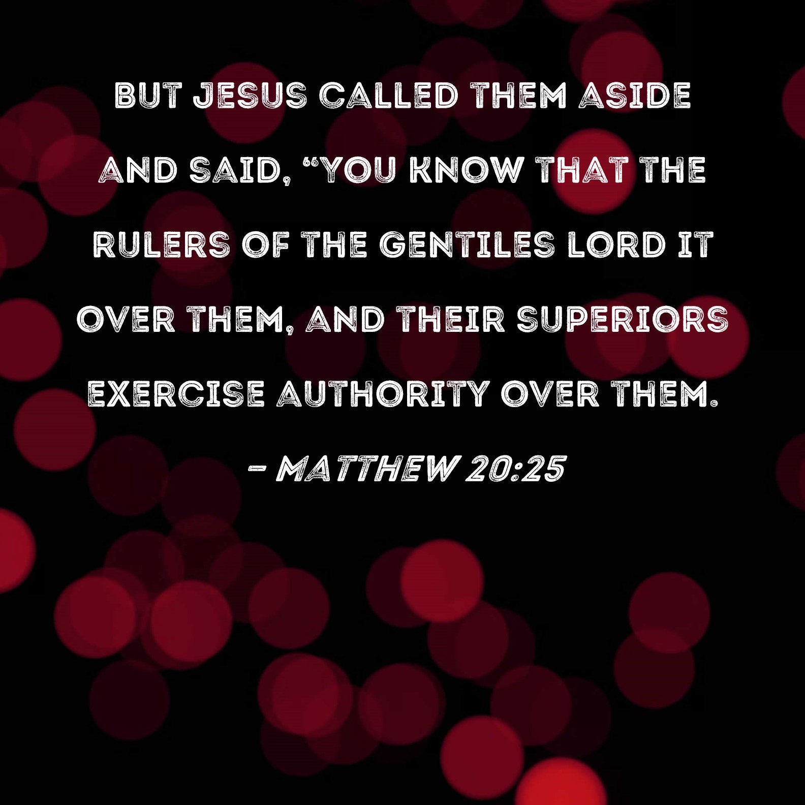 Matthew 20:25 But Jesus called them aside and said, "You know that the rulers of the Gentiles lord it over them, and their superiors exercise authority over them.