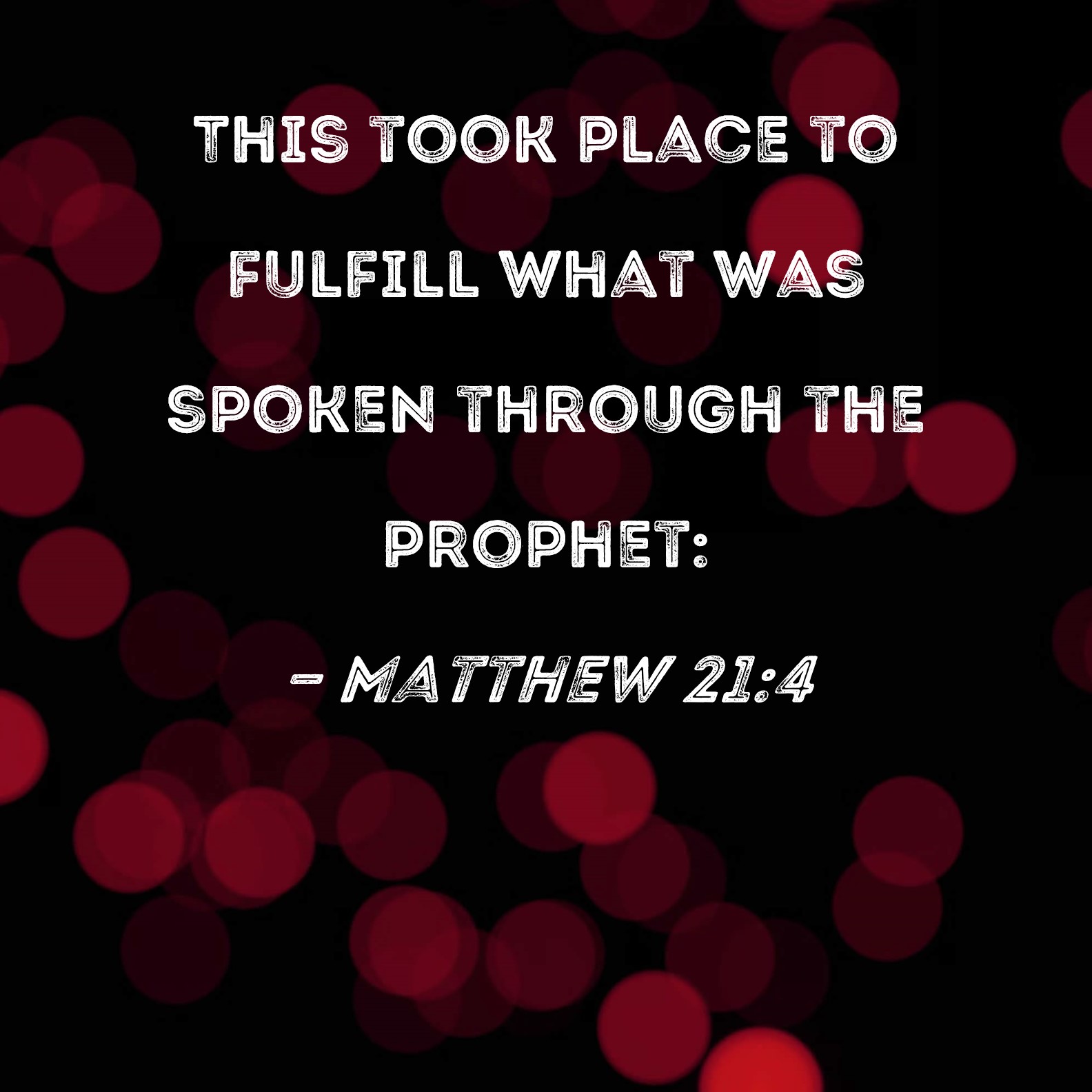 Matthew 21:4 This took place to fulfill what was spoken through the prophet: