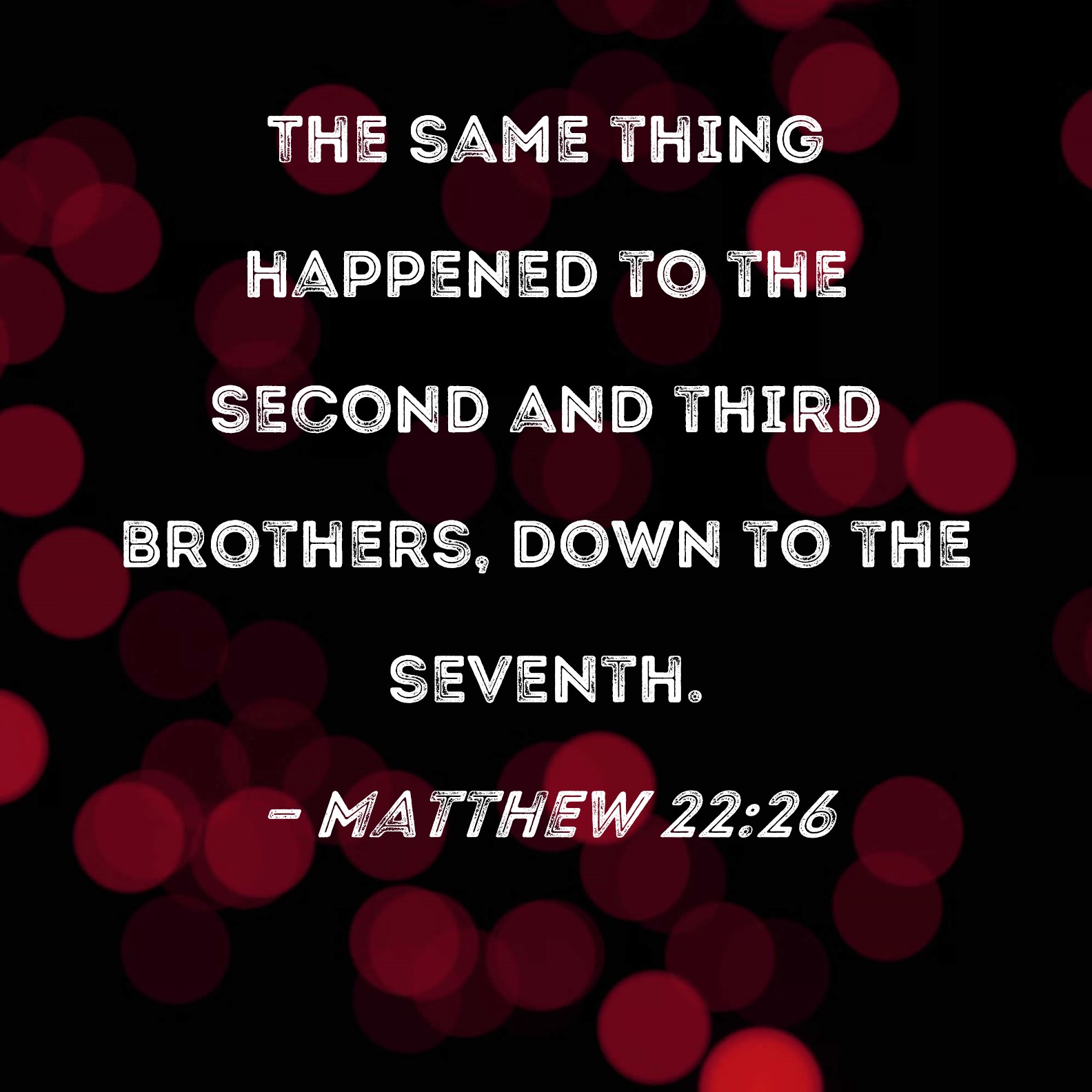 Matthew 22:26 The same thing happened to the second and third brothers, down to the seventh.