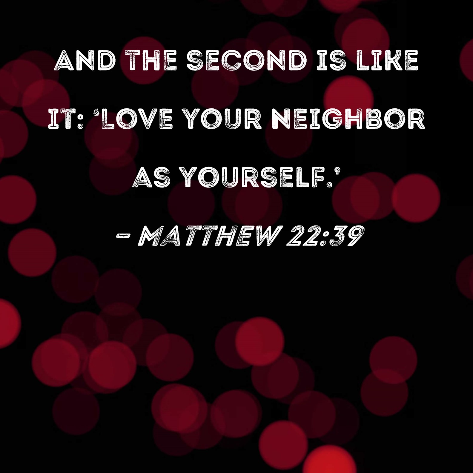 Matthew 22:39 And the second is like it: 'Love your neighbor as yourself.'