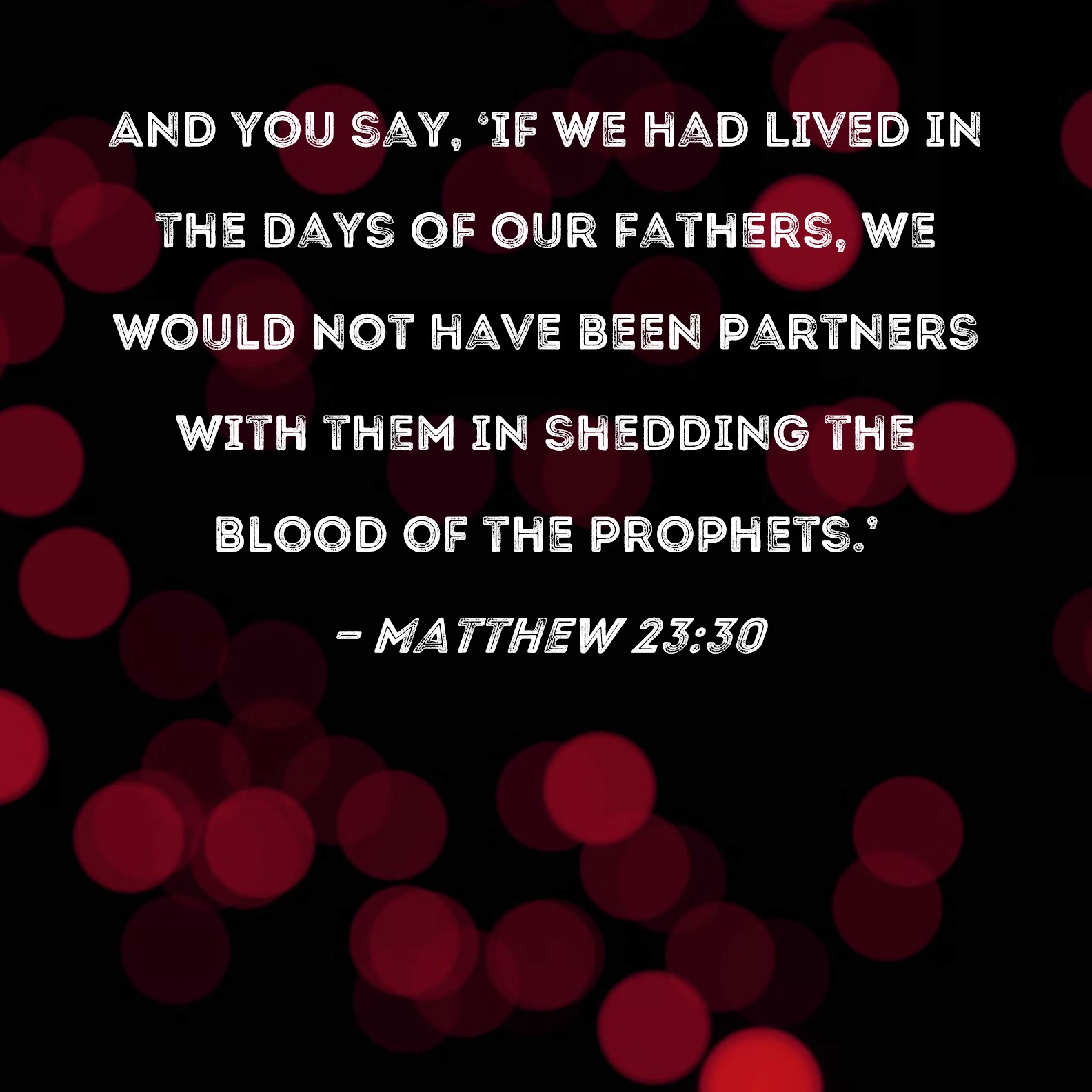 Matthew 23:30 And you say, 'If we had lived in the days of our fathers, we would not have been partners with them in shedding the blood of the prophets.'