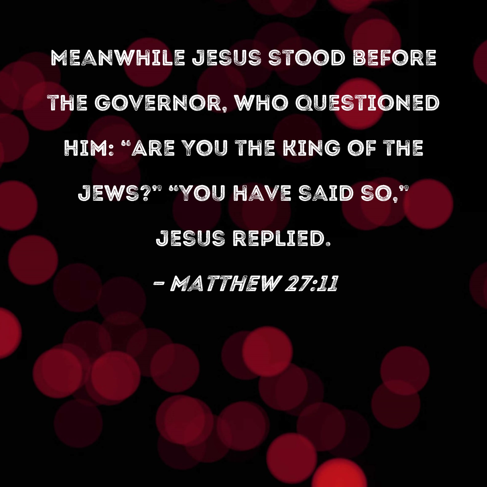 Matthew 27:11 Meanwhile Jesus stood before the governor, who questioned Him: "Are You the King of the Jews?" "You have said so," Jesus replied.