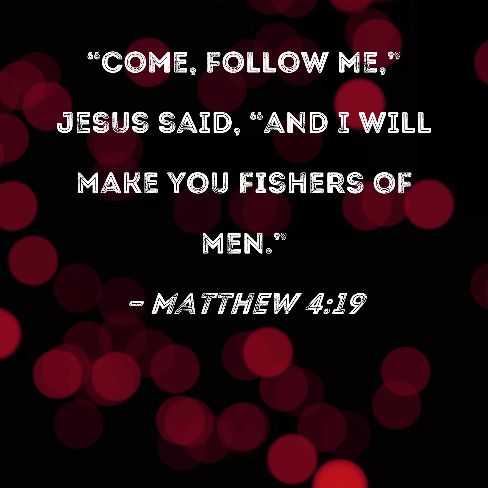Matthew 4:19 "Come, follow Me," Jesus said, "and I will make you fishers of men."