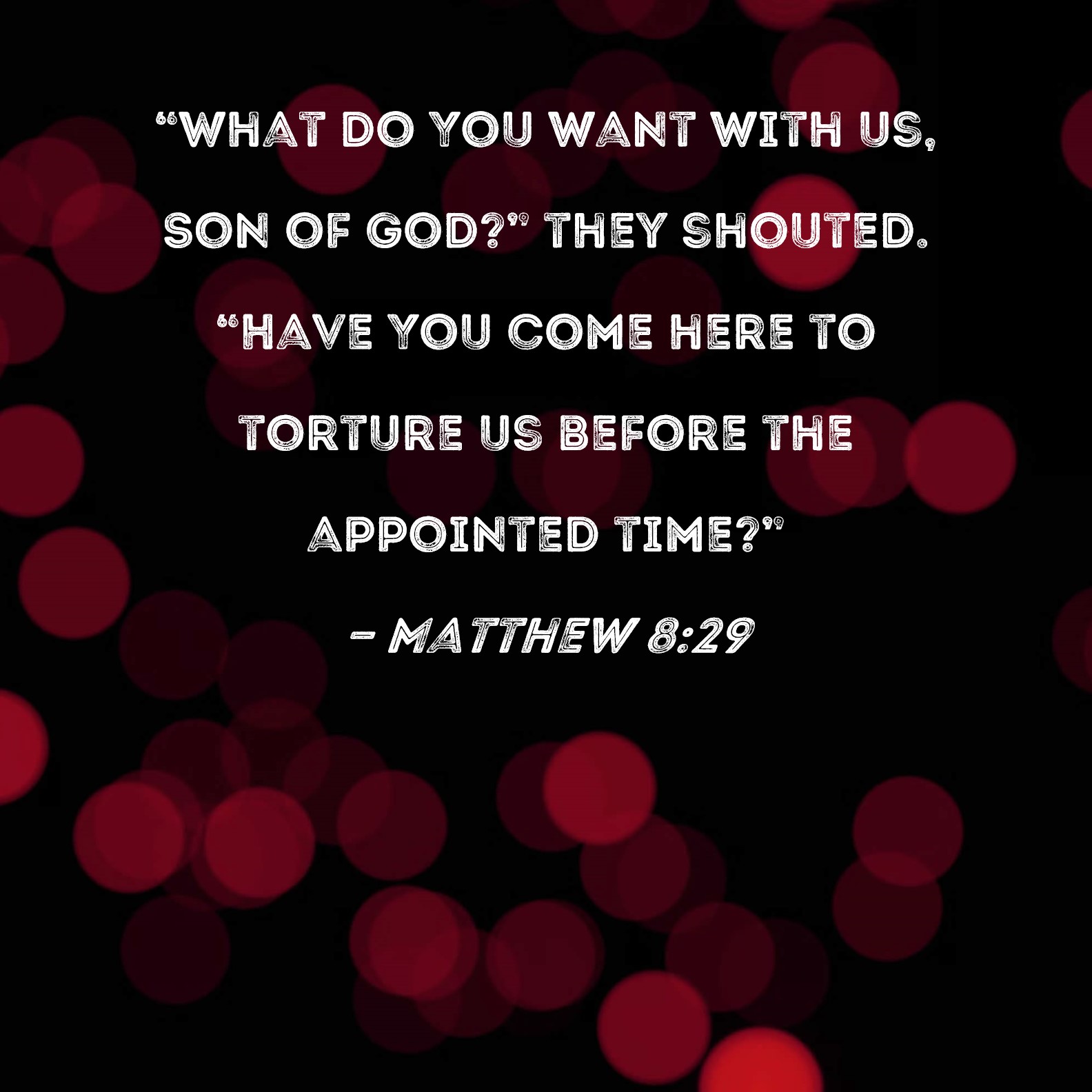 Matthew 8:29 "What do You want with us, Son of God?" they shouted. "Have You come here to torture us before the appointed time?"
