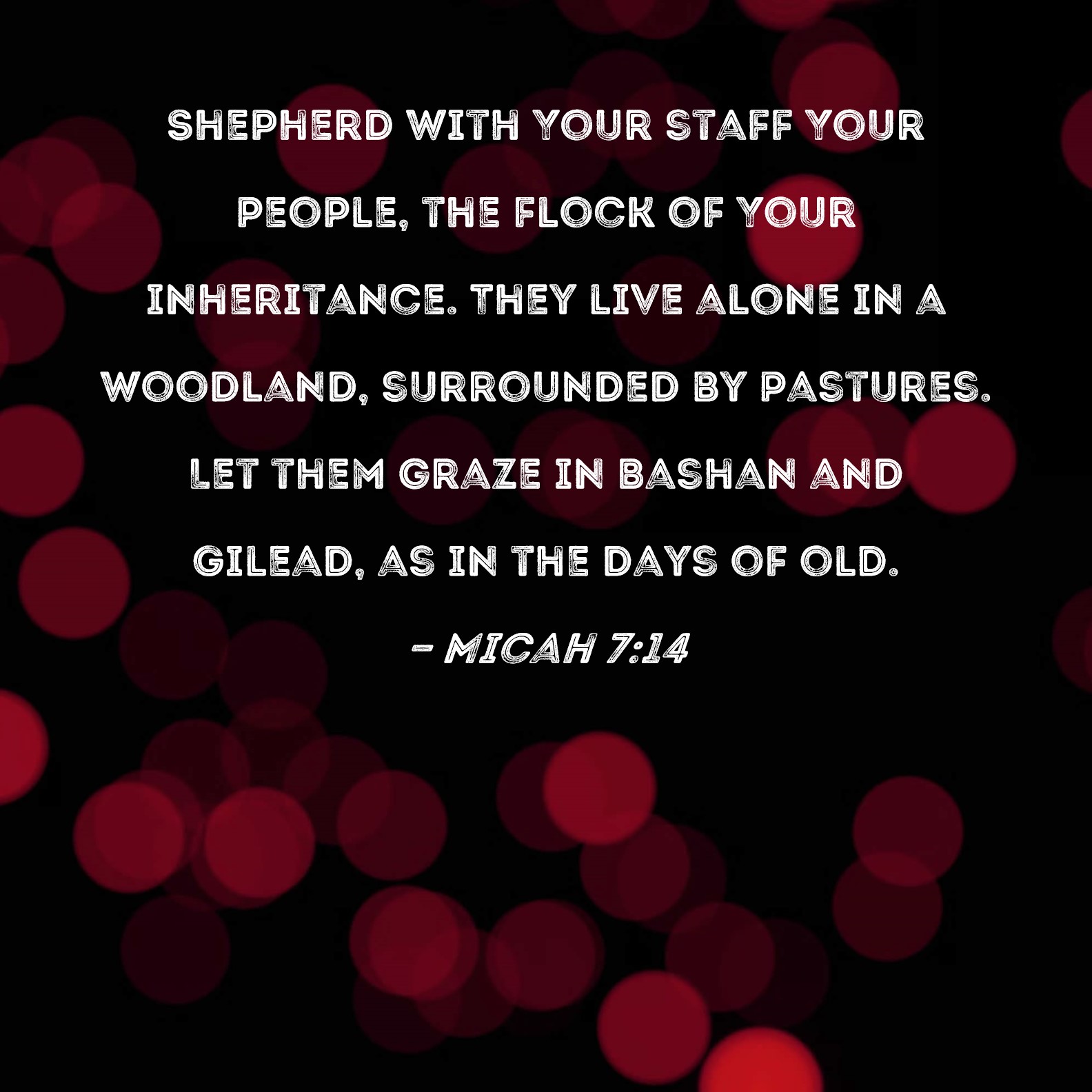 Micah 7:14 Shepherd with Your staff Your people, the flock of Your inheritance. They live alone in a woodland, surrounded by pastures. Let them graze in Bashan and Gilead, as in the days of old.