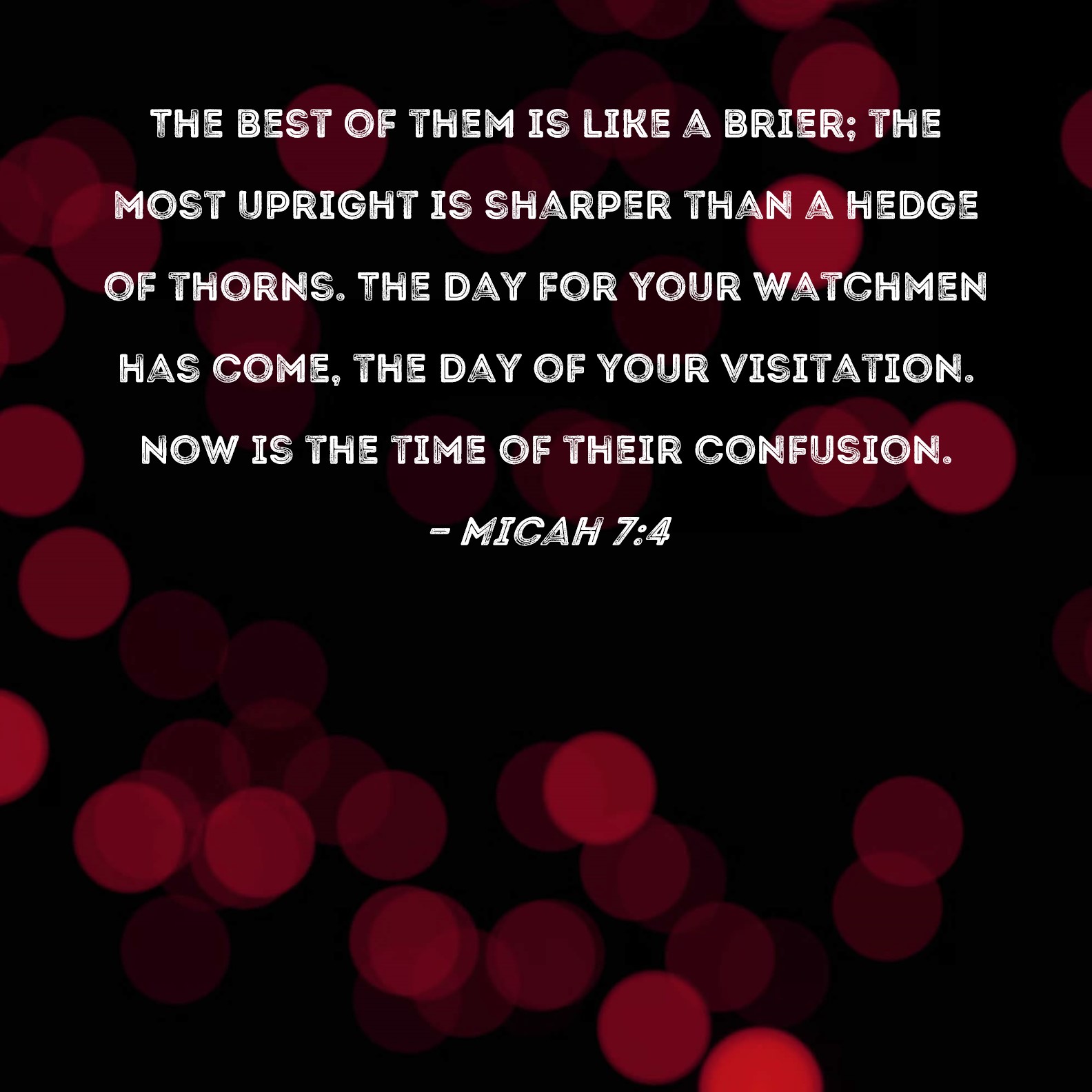 Micah 7:4 The best of them is like a brier; the most upright is sharper than a hedge of thorns. The day for your watchmen has come, the day of your visitation. Now is the time of their confusion.