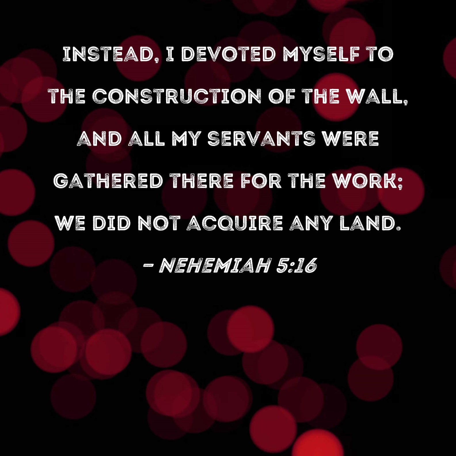 Nehemiah 5:16 Instead, I devoted myself to the construction of the wall, and all my servants were gathered there for the work; we did not acquire any land.