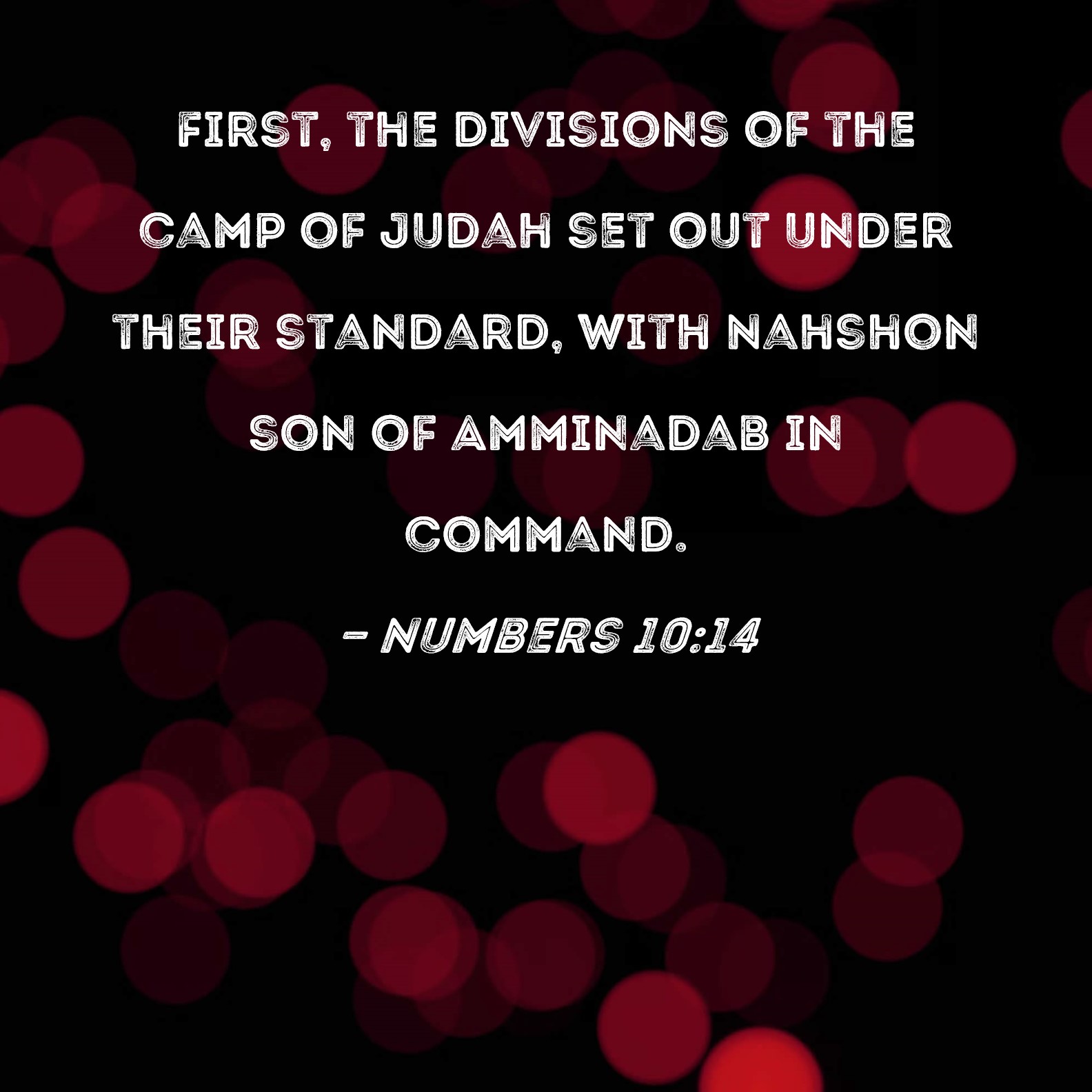 Numbers 10:14 First, the divisions of the camp of Judah set out under their standard, with Nahshon son of Amminadab in command.