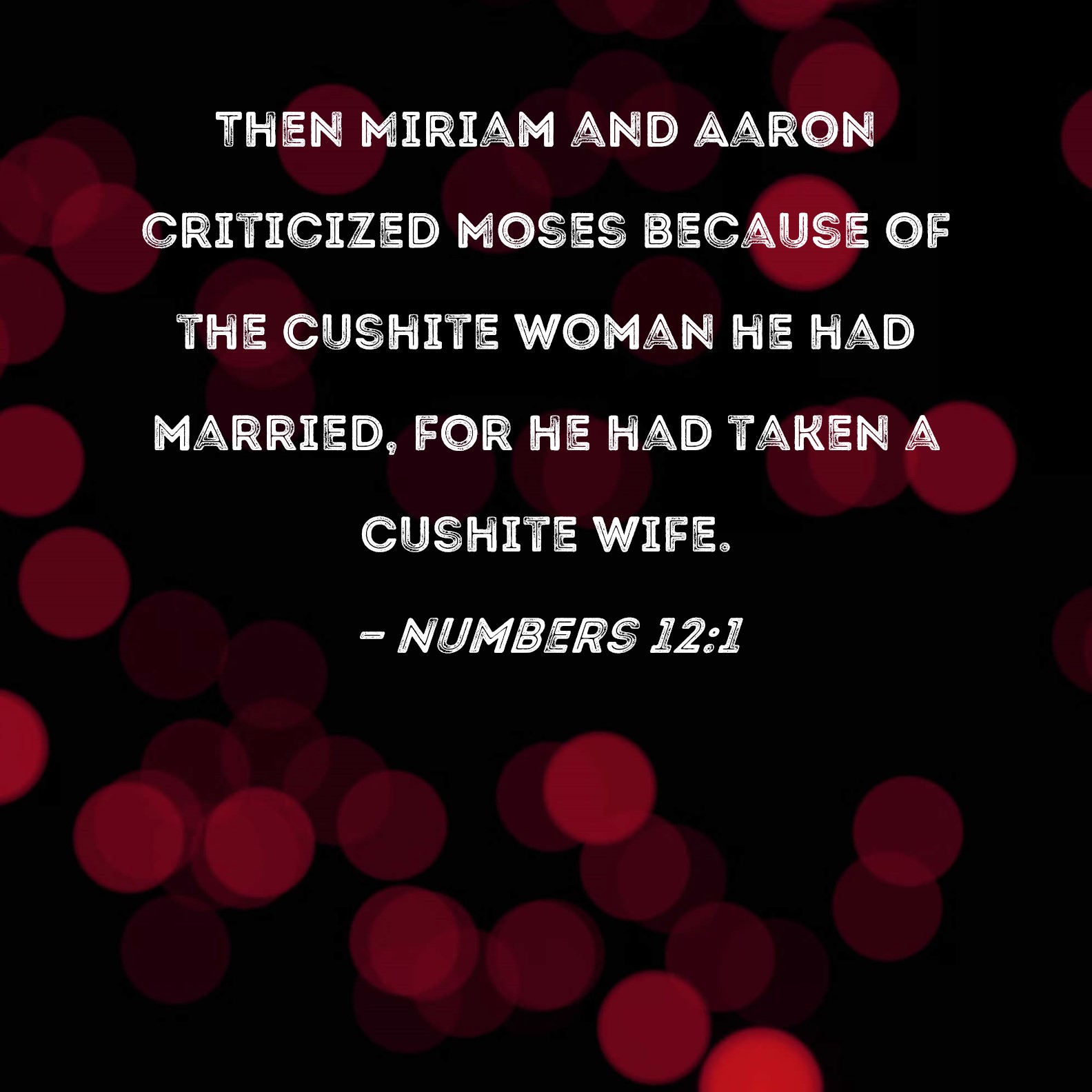 Numbers 12:1 Then Miriam and Aaron criticized Moses because of the Cushite woman he had married, for he had taken a Cushite wife.
