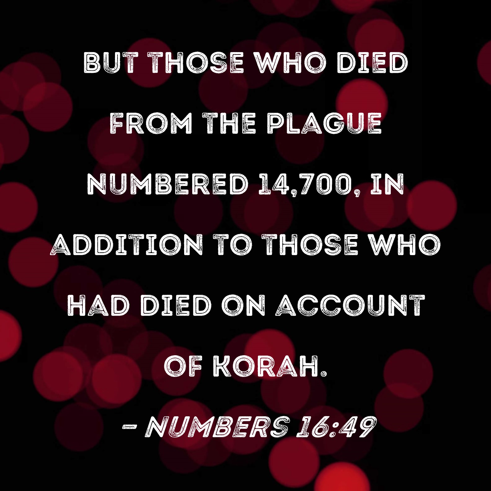 Numbers 16:49 But those who died from the plague numbered 14,700, in addition to those who had died on account of Korah.