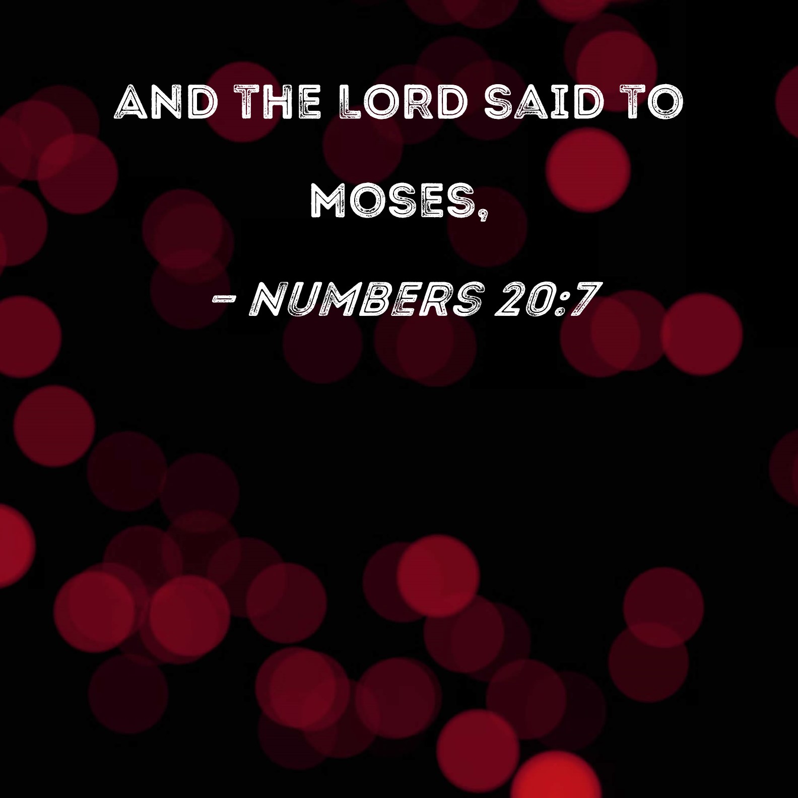 BSB: And the LORD said to Moses, KJV: And the LORD spake unto Moses, saying, DRB: And the Lord spoke to Moses, saying: DBT: And Jehovah spoke to Moses, saying, ERV: And the LORD spake unto Moses, saying, WBT: And the LORD spoke to Moses, saying, WEB: Yahweh spoke to Moses, saying, YLT: And Jehovah speaketh unto Moses, saying,Links Numbers 20:7 NIV • Numbers 20:7 NLT • Numbers 20:7 ESV • Numbers 20:7 NASB • Numbers 20:7 KJV • Numbers 20:7 Interlinear • Numbers 20:7 Commentaries • Numbers 20:7 Parallel Texts • Numbers 20:7 Bible Apps • Numbers 20:7 Parallel • Bible Hub |