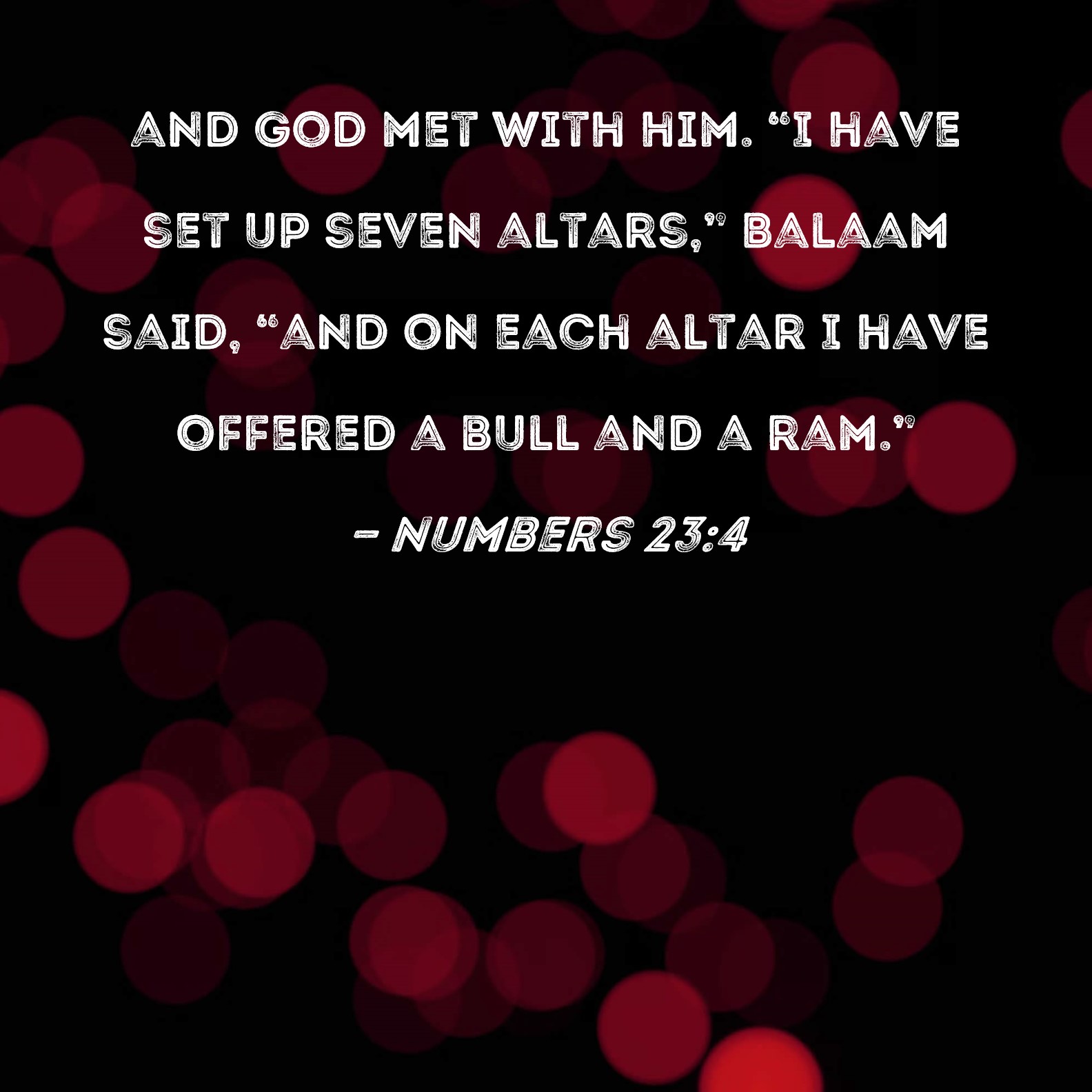 Numbers 23:4 and God met with him. "I have set up seven altars," Balaam said, "and on each altar I have offered a bull and a ram."