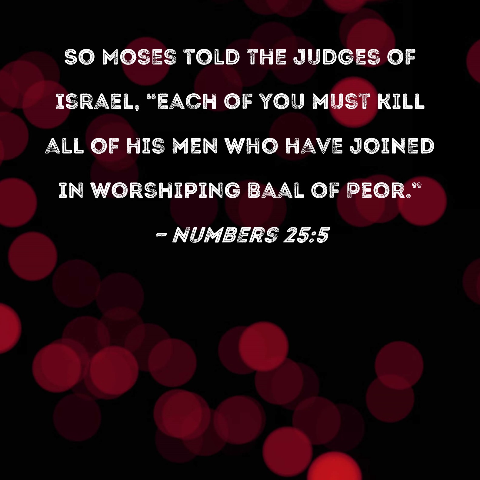 And Moses said to the judges of Israel, Slay ye every one his men that were joined to Baal-peor.