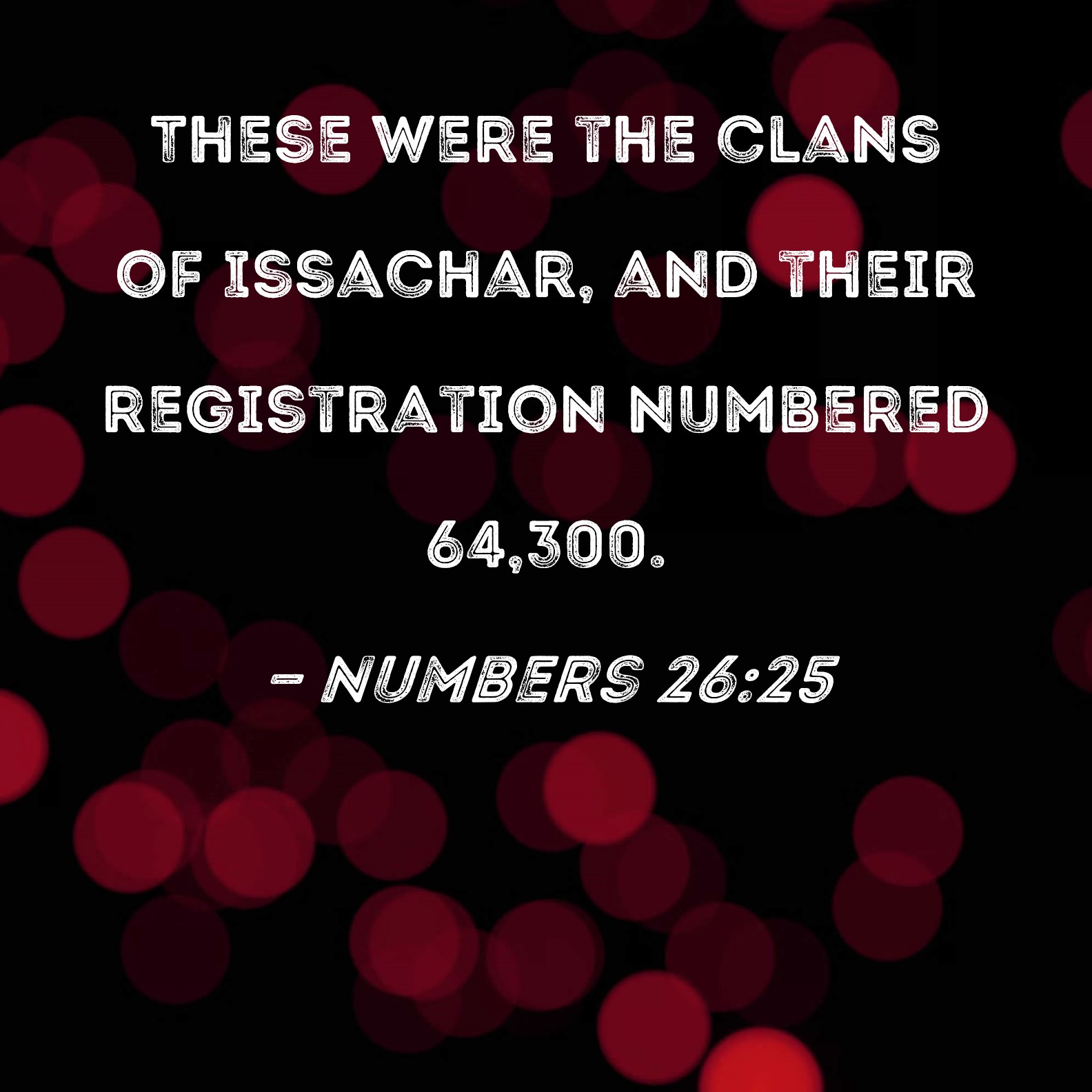Numbers 26:25 These were the clans of Issachar, and their registration numbered 64,300.