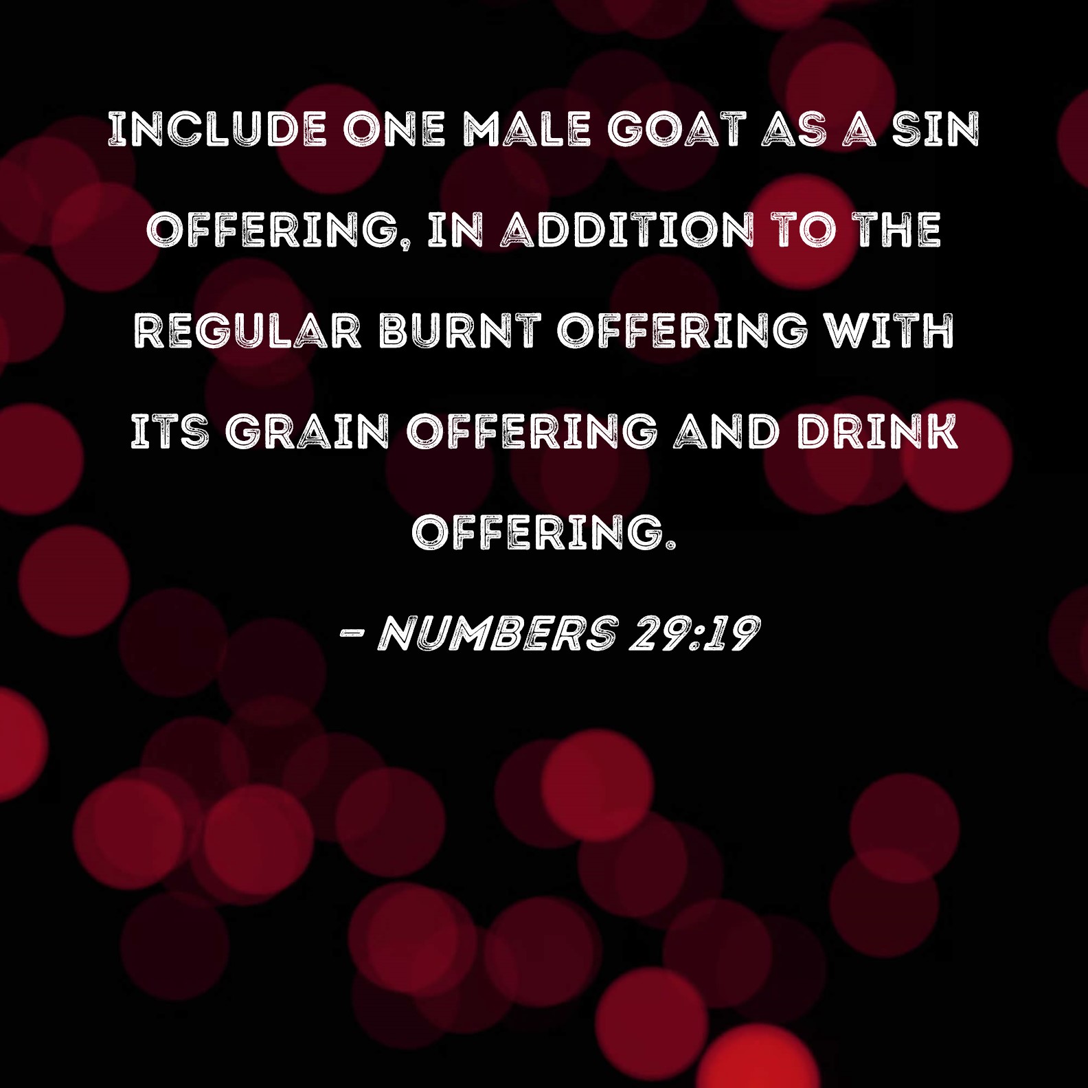 Numbers 29:19 Include one male goat as a sin offering, in addition to the regular burnt offering with its grain offering and drink offering.