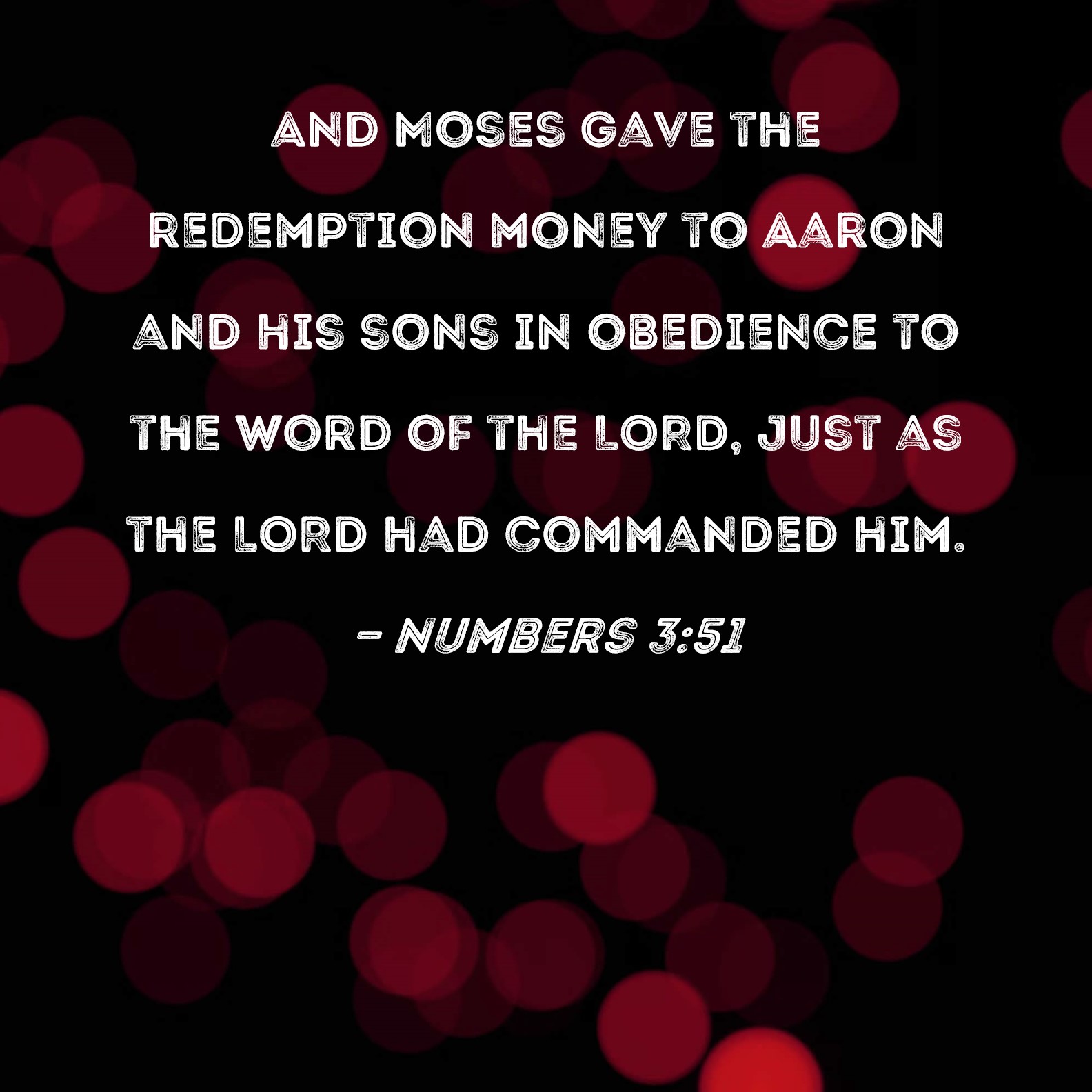 Numbers 3:51 And Moses gave the redemption money to Aaron and his sons in obedience to the word of the LORD, just as the LORD had commanded him.