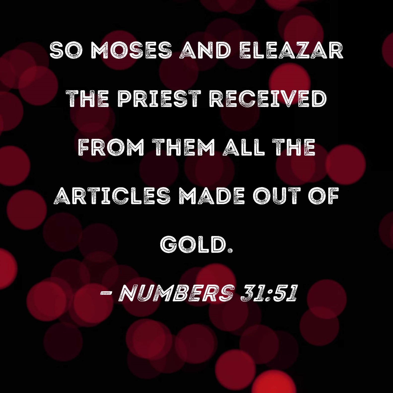 Numbers 31:51 So Moses and Eleazar the priest received from them all the articles made out of gold.