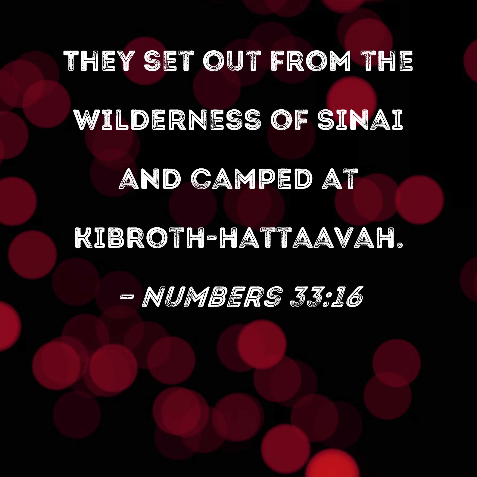 Numbers 33:16 They set out from the Wilderness of Sinai and camped at Kibroth-hattaavah.