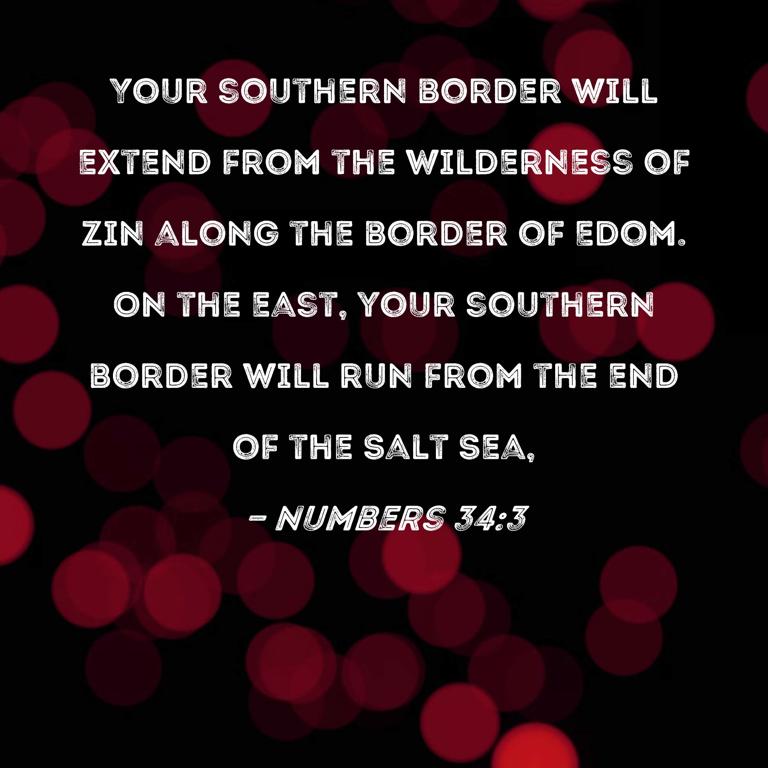 Numbers 34:3 Your southern border will extend from the Wilderness of Zin along the border of Edom. On the east, your southern border will run from the end of the Salt Sea,