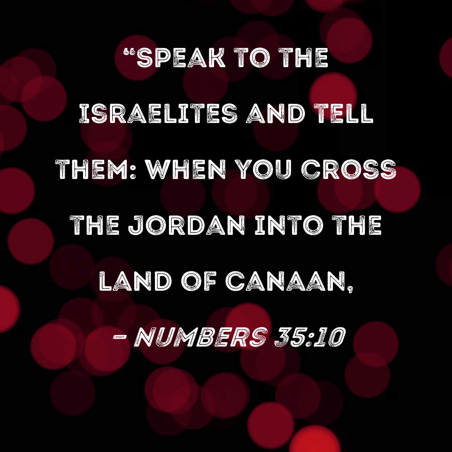 BSB: "Speak to the Israelites and tell them: When you cross the Jordan into the land of Canaan, KJV: Speak unto the children of Israel, and say unto them, When ye be come over Jordan into the land of Canaan; DRB: Speak to the children of Israel, and thou shalt say to them: When you shall have passed over the Jordan into the land of Chanaan, DBT: Speak unto the children of Israel, and say unto them, When ye pass over the Jordan into the land of Canaan, ERV: Speak unto the children of Israel, and say unto them, When ye pass over Jordan into the land of Canaan, WBT: Speak to the children of Israel, and say to them, When ye have passed over Jordan into the land of Canaan; WEB: “Speak to the children of Israel, and tell them, ‘When you pass over the Jordan into the land of Canaan, YLT: 'Speak unto the sons of Israel, and thou hast said unto them, When ye are passing over the Jordan to the land of Canaan,Links Numbers 35:10 NIV • Numbers 35:10 NLT • Numbers 35:10 ESV • Numbers 35:10 NASB • Numbers 35:10 KJV • Numbers 35:10 Interlinear • Numbers 35:10 Commentaries • Numbers 35:10 Parallel Texts • Numbers 35:10 Bible Apps • Numbers 35:10 Parallel • Bible Hub |